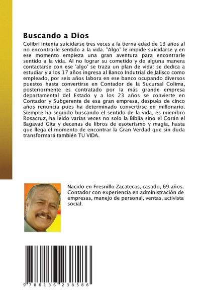Colibri intenta suicidarse tres veces a la tierna edad de 13 años al no encontrarle sentido a la vida. "Algo" le impide suicidarse y en ese momento empieza una gran aventura para encontrarle sentido a la vida. Al no lograr su cometido y de alguna manera contactarse con ese 'algo' se traza un plan de vida: se dedica a estudiar y a los 17 años ingresa al Banco Indutrial de Jalisco como empleado, por seis años labora en ese banco ocupando diversos puestos hasta convertirse en Contador de la Sucursal Colima, posteriormente es contratado por la más grande empresa departamental del Estado y a los 23 años se convierte en Contador y Subgerente de esa gran empresa, después de cinco años renuncia pues ha determinado convertirse en millonario. Siempre ha seguido buscando el sentido de la vida, es miembro Rosacruz, ha leido varias veces no solo la Biblia sino el Corán el Bagavad Gita y decenas de libros de esoterismo y magia, hasta que llega el momento de encontrar la Gran Verdad que sin duda transformará también TU VIDA.
