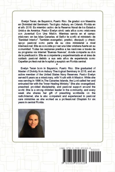 ESTE LIBRO ESTA DEDICADO A TODOS LOS QUE BUSCAN DILIGENTEMENTE SU SANIDAD INTERIOR EN DIOS EL PADRE, JESòS EL HIJO Y CON LA AYUDA DEL ESPêRITU SANTO EL CONSOLADOR. POR MAS DE CUARENTA Y CINCO A¿OS PASTOR EVELYN GUARDî EL SECRETO QUE LA LLEVî A BUSCAR SU SANIDAD INTERIOR. Y AHORA ESTA REVELADO EN ESTE LIBRO, PARA QUE LO USES COMO HERRAMIENTA PARA RECIBIR TU PROPIA SANIDAD INTERIOR. THIS BOOK IS DEDICATED TO EVERYONE THAT IS SEEKING DILENGENTLY THEIR INNER HEALING IN GOD (THE FATHER), JESUS (THE SON) AND WITH THE HELP OF THE HOLY SPIRIT (THE COMFORTER). FOR MORE THAN FORTY-FIVE YEARS PASTOR EVELYN KEPT IN SECRET THE REASON THAT LEAD HER TO SEARCH FOR HER INNER HEALING. AND NOW ITS REVEALED IN THIS BOOK, IN ORDER TO USE IT AS A TOOL TO HELP YOU TO RECEIVE YOUR OWN INNER HEALING.