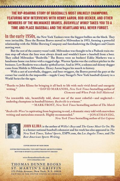 The rip-roaring story of baseball's most unlikely champions, featuring interviews with Henry Aaron, Bob Uecker and other members of the Milwaukee Braves, Bushville Wins! takes you to a time and place baseball and the Heartland will never forget. "Bushville hits the sweet spot of my childhood, the year my family moved to Wisconsin and the Braves won the World Series against the Yankees, a team my Brooklyn-raised dad taught us to hate. Thanks to John Klima for bringing it all back to life with such vivid detail and energetic writing." -- David Maraniss, New York Times bestselling author of Clemente and When Pride Still Mattered In the early 1950s, the New York Yankees were the biggest bullies on the block. They were invincible: they led the New York City baseball dynasty, which for eight consecutive years held an iron grip on the World Series championship. Then the Boston Braves moved to Milwaukee in 1953, becoming surprise revolutionaries. Led by visionary owner Lou Perini, the Braves formed a powerful relationship with the Miller Brewing Company and foreshadowed the Dodgers and Giants moving west, sparking continental expansion and the ballpark boom. But the rest of the country wasn't sold. Why would a major league team move to a minor league town? In big cities like New York, Milwaukee was thought to be a podunk train station stop-off where the fans were always drunk and wouldn't know a baseball from a beer. They called Milwaukee Bushville. The Braves were no bushers! Eddie Mathews was a handsome home run hitter with a rugged edge. Warren Spahn was the craftiest pitcher in the business. Lew Burdette was a sharky spitball artist. Taken together, the Braves reveled in the High Life and made Milwaukee famous, while Wisconsin fans showed the rest of the country how to crack a cold one and throw a tailgate party. And in 1954, a solemn and skinny slugger came from Mobile to Milwaukee. Henry Aaron began his march to history. With a cast of screwballs, sluggers and beer swiggers, the Braves proved the guys at the corner bar could do the impossible - topple Casey Stengel's New York baseball dynasty in a World Series for the ages.