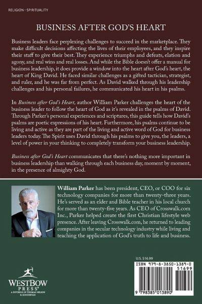 I have found David the son of Jesse, a man after My heart. (Acts 13:22) Business leaders face perplexing challenges to succeed in the marketplace, they make difficult decisions affecting the lives of their employees, and they inspire their staff to give their best. They experience triumphs and defeats, elation and agony, real wins and real losses. And while the Bible doesn¿t give us a manual for business leadership, it does give us a window into the heart after God¿s heart, the heart of King David. He faced similar challenges as a gifted tactician, strategist, and ruler, and he was very far…mehr
