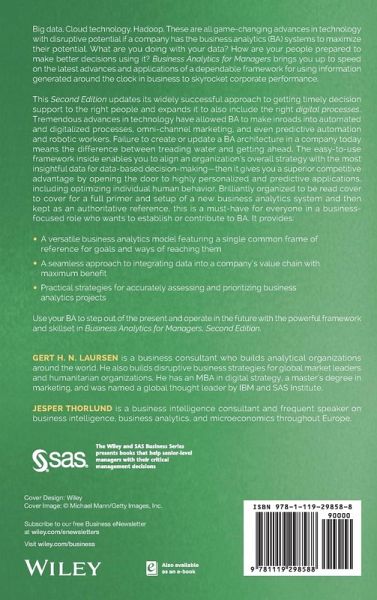 Business Analytics for Managers offers real-world guidance for organizations looking to leverage their data into a competitive advantage. This new second edition covers the advances that have revolutionized the field since the first edition's release; big data and real-time digitalized decision making have become major components of any analytics strategy, and new technologies are allowing businesses to gain even more insight from the ever-increasing influx of data. New terms, theories, and technologies are explained and discussed in terms of practical benefit, and the emphasis on forward thinking over historical data describes how analytics can drive better business planning. Coverage includes data warehousing, big data, social media, security, cloud technologies, and future trends, with expert insight on the practical aspects of the current state of the field.