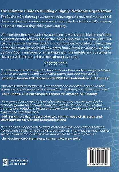 Do you want to create a thriving organization that attracts and retains top talent? "Thoughtful and complete systems ensure the smooth running of your business. Business Breakthrough 3.0 is a powerful and pragmatic guide to the systems and processes to be successful in business, no matter your role." Colin Bodell - CTO Bazaarvoice - Former VP Amazon, VP Shopify In this groundbreaking book, business and technology experts Lee Atchison and Ken Gavranovic draw on their combined 60 years of experience to provide a step-by-step methodology for clarifying how your company operates and uncovering the entrenched patterns that are holding you back. Say goodbye to leading by gut instinct and hello to putting your key business data to work. Based on their work with hundreds of leaders worldwide, the authors have developed the Business Breakthrough 3.0 approach, which leverages the universal motivational drivers embedded in every person and uses data to identify what's working and what's not within your company. This proven methodology involves five distinct processes: establishing and actively embracing a company mission, vision, and set of core values; using a formal critical-thinking framework to organize how your company makes decisions; understanding what to measure and knowing how to use the data correctly; optimizing your organizational structure to drive successful actions; and leveraging a market growth strategy for sales success. With Business Breakthrough 3.0, you'll learn how to create a highly profitable organization that attracts and retains people who truly love their jobs. This isn't just another business book - it's a comprehensive guide to overcoming entrenched patterns and building a better future for your company. Whether you're a CEO, a manager, or an entrepreneur, the insights and strategies in this book will help you achieve breakthrough success. Order your copy today and discover the proven methodology that has helped hundreds of leaders around the world achieve breakthrough success. Ken Gavranovic has been a Global Chief Product Officer, Chief Technology Officer, Chief Operating Officer, and Senior Executive. Ken helps scale companies to billions in revenue through innovation, market strategy, product vision, fresh talent, and transformation. Lee Atchison is a recognized industry thought leader in cloud computing. He has committed his career to architecting and building high scale, cloud-based, service-oriented, SaaS applications.