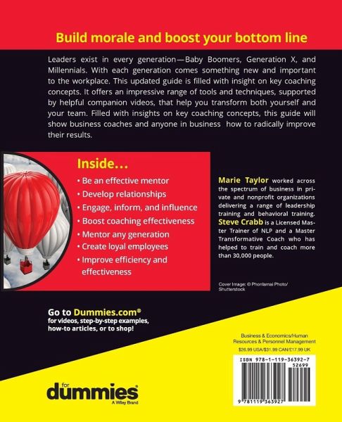 Business Coaching & Mentoring For Dummies, 2nd Edition is aimed primarily at business owners and leaders who want effective personal and business led strategies to enable them to coach and mentor other colleagues, and to enhance their chances of success in business and more generally. The book can also help business coaches/ mentors who are new to the industry (and prospective coaches and mentors) and are interested in understanding the process of business coaching and mentoring.