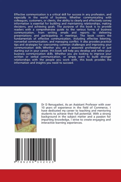 Effective communication is a critical skill for success in any profession, and especially in the world of business. Whether communicating with colleagues, customers, or clients, the ability to clearly and effectively convey information is essential for building and maintaining relationships, making decisions, and achieving goals. The purpose of this book is to provide readers with a comprehensive guide to the various forms of business communication, from writing emails and reports to delivering presentations and participating in meetings. The book covers the fundamentals of effective communication, including effective listening, nonverbal communication, and managing conflict. It also provides practical tips and strategies for overcoming common challenges and improving your communication skills. Whether you are a seasoned professional or just starting out in your career, this book will help you develop and refine your business communication skills. Whether you are looking to improve your written or verbal communication, or simply want to build stronger relationships with the people you work with, this book provides the information and insights you need to succeed.
