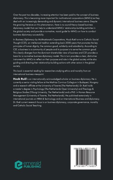 In Business Diplomacy by Multinational Corporations, Huub Ruël turns to Catholic Social Thought (CST), to provide a clear, distinctive instrument for MNCs to reflect on their purpose and role in the global society while also guiding and directing their relationship-building actions with other actors in the global society.