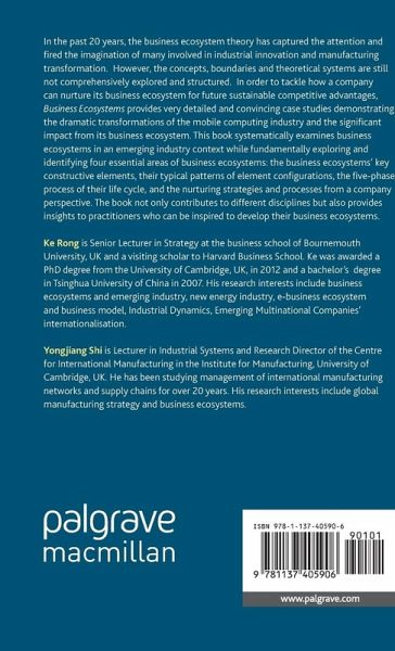 Ke Rong is Senior Lecturer in Strategy at the business school of Bournemouth University, UK. Ke was awarded a PhD degree from the University of Cambridge, UK, in 2012 and a bachelor's degree in Tsinghua University of China in 2007. His research interests include business ecosystems and emerging industry, new energy industry, e-business ecosystem and business model, Industrial Dynamics, Emerging Multinational Companies' internationalisation Yongjiang Shi is Lecturer in Industrial Systems and Research Director of the Centre for International Manufacturing in the Institute for Manufacturing, University of Cambridge, UK. He has been studying management of international manufacturing networks and supply chains for over 20 years. His research interests include global manufacturing strategy and business ecosystems.