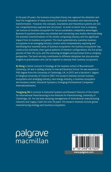Ke Rong is Senior Lecturer in Strategy at the business school of Bournemouth University, UK. Ke was awarded a PhD degree from the University of Cambridge, UK, in 2012 and a bachelor's degree in Tsinghua University of China in 2007. His research interests include business ecosystems and emerging industry, new energy industry, e-business ecosystem and business model, Industrial Dynamics, Emerging Multinational Companies' internationalisation Yongjiang Shi is Lecturer in Industrial Systems and Research Director of the Centre for International Manufacturing in the Institute for Manufacturing, University of Cambridge, UK. He has been studying management of international manufacturing networks and supply chains for over 20 years. His research interests include global manufacturing strategy and business ecosystems.