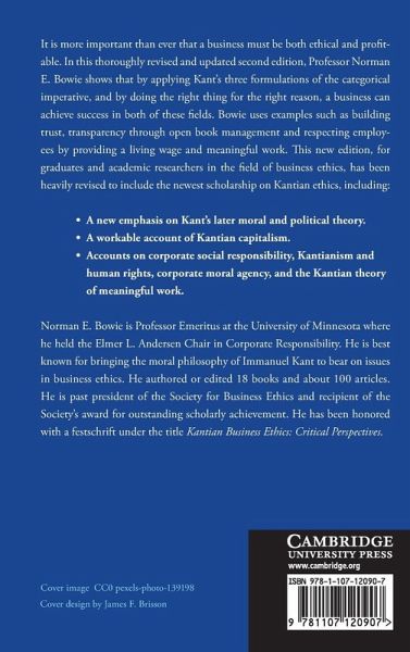 It is more important than ever that a business must be both ethical and profitable. In this thoroughly revised and updated second edition, Norman E. Bowie shows that by applying Kant's three formulations of the categorical imperative, and by doing the right thing for the right reason, a business can achieve success in both of these fields. Bowie uses examples such as building trust, transparency through open book management, and respecting employees by providing a living wage and meaningful work. This new edition, for graduates and academic researchers in the field of business ethics, has been heavily revised to include the newest scholarship on Kantian ethics, with a new emphasis on Kant's later moral and political theory, a workable account of Kantian capitalism, and additional accounts on corporate social responsibility, Kantianism and human rights, corporate moral agency, and the Kantian theory of meaningful work.