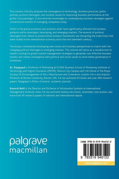 This volume critically analyzes the convergence of technology, business practices, public policies, political ideologies, and societal values for improving business performance at the global-local paradigm. It also enriches knowledge on contemporary business strategies against conventional wisdom of managing companies today. Shifts in the global economic and political order have significantly affected the business patterns within developed, developing, and emerging markets. The reversal of political ideologies from liberal to protectionist business frameworks are disrupting the trade flows that were rooted in the international economy since the mid-twentieth century.