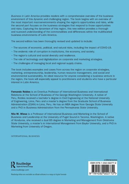 Business in Latin America provides readers with a comprehensive overview of the business environment of this dynamic and challenging region. The book begins with an overview of the most important macroenvironments shaping the region's opportunities and risks, while the second part focuses on the business strategies that respond to those opportunities and risks. Capturing the dynamism of this region, this new edition provides a thorough and nuanced understanding of the commonalities and differences within the multifaceted business environments of Latin America.