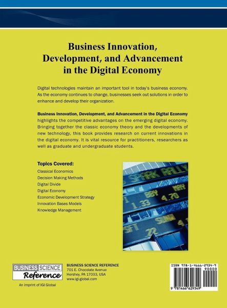 Digital technologies maintain an important tool in today's business economy. As the economy continues to change, businesses seek out solutions in order to enhance and develop their organization. Business Innovation, Development, and Advancement in the Digital Economy highlights the competitive advantages on the emerging digital economy. Bringing together the classic economy theory and the developments of new technology, this book provides research on current innovations in the digital economy. It is vital resource for practitioners, researchers as well as graduate and undergraduate students.