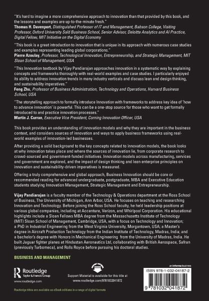 "This Innovation textbook by Vijay Pandiarajan approaches innovation in a systematic way by explaining concepts and frameworks thoroughly with real-world examples and cases studies. I particularly enjoyed its ability to address innovation trends in many industry verticals and discuss lean, design thinking, and sustainability imperatives. This book will certainly benefit undergraduate and graduate students as well as innovation practitioners from the industry."