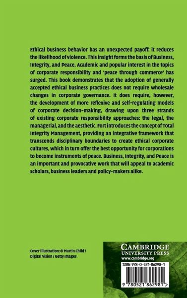 Ethical business behavior has an unexpected payoff: it reduces the likelihood of violence. This insight forms the basis of Business, Integrity, and Peace. Academic and popular interest in the topics of corporate responsibility and 'peace through commerce' has surged in recent years. This book demonstrates that the adoption of generally accepted ethical business practices does not require wholesale changes in corporate governance. It does require, however, the development of more reflexive and self-regulating models of corporate decision-making, drawing upon three strands of existing corporate responsibility approaches: the legal, the managerial, and the aesthetic. Fort introduces the concept of Total Integrity Management, providing an integrative framework that transcends disciplinary boundaries to create ethical corporate cultures, which in turn offer the best opportunity for corporations to become instruments of peace. Business, Integrity, and Peace is an important and provocative work that will appeal to academic scholars, business leaders and policy-makers alike.