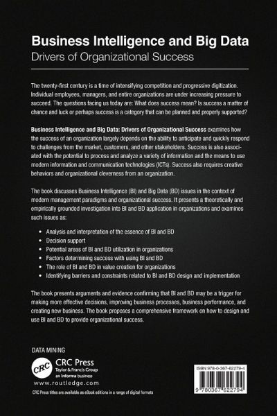 The book provides a theoretically and empirically grounded discussion how to design and use business intelligence (BI) and Big Data (BD) to benefit organizations. It examines the conceptualization of BI and BD, applications of BI and BD, BI and BD maturity, and factors of BI- and BD-based success, as well as presents an application framework.