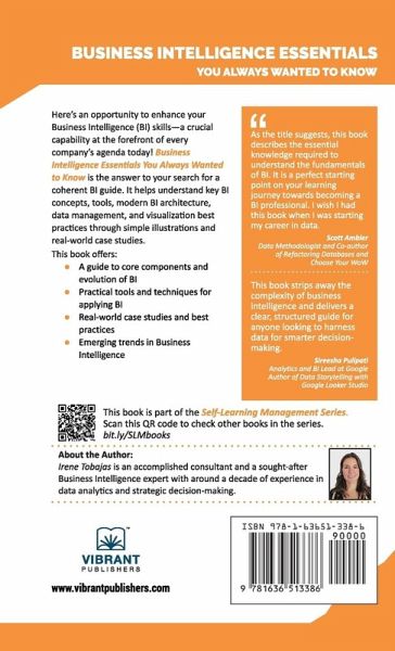 A Beginner's Guide to BI Tools, Data Analytics Techniques, Data Visualization & Data-Driven Strategy. Demystifying data analytics for smarter business decisions Explore the core components and evolution of Business Intelligence (BI) Learn how to choose and implement the right BI tools for your organization Master data visualization techniques for effective communication of insights Understand real-world applications of successful BI implementations Gain insights into data governance, security, and ethical considerations in BI Discover emerging trends and future directions in the field of BI Enhance your Business Intelligence skills-a crucial mechanism at the forefront of every company's agenda today! Here's an opportunity to deepen your understanding of the modern BI architecture, data management, and visualization best practices. Business Intelligence Essentials You Always Wanted to Know (Business Intelligence Essentials) is the answer to your search for a coherent BI guide. It helps comprehend and implement BI in professional or academic pursuits. It leverages simple illustrations and real-world case studies to explain key BI concepts, tools, and practical applications. This book delves into different types of analytics, including descriptive, diagnostic, predictive, and prescriptive, providing a well-rounded view of the BI landscape. It provides entrepreneurs, leaders, and professionals with essential guidance to master BI and drive success, making it an invaluable resource across industries. With its blend of theoretical concepts and hands-on approaches including quiz questions for every Chapter, and practical tools, Business Intelligence Essentials covers the entire spectrum of BI, enabling you to accelerate growth in today's competitive business landscape. It also provides ready-to-use downloadable templates, and online resources for professionals in the field. This book is part of the Self-Learning Management Series designed to help you learn essential management lessons.