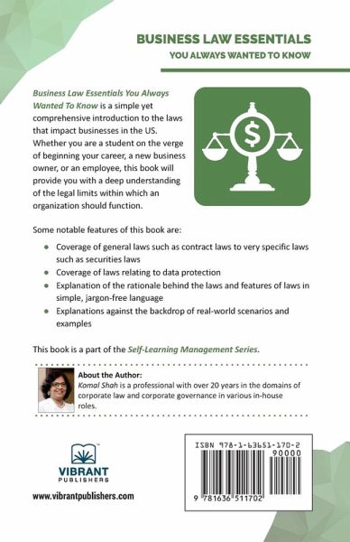 A Practical Guide to Contract Law, Intellectual Property, Employment, Taxation, and Data Protection. A simple, comprehensive, and useful guide about the laws that impact businesses in the US Business Law Essentials You Always Wanted To Know is a simple yet comprehensive introduction to the laws that impact businesses in the US. It is not advisable for a business founder or owner to be completely unaware of the implications of the legislation on their business and depend totally upon a lawyer to advise and guide them. Business owners must have a working knowledge of the law in their own country so that they can avoid trouble and adhere to the laws. Business Law Essentials is a compact but handy guide for learning about business laws in the US. Whether you are a student on the verge of beginning your career, a new business owner, or an employee, this book will provide you with a deep understanding of the legal limits within which an organization should function and how an organization interacts with the regulators for the specific business sector. Some notable features of this book are:Coverage of general laws such as contract laws to very specific laws such as securities laws Coverage of laws that are recently developing, such as laws relating to data protection Explanation of the rationale behind the laws and features of laws in simple, jargon-free language Questions at the end of each chapter to test your understanding of the chapter rather than your memory. Explanations against the backdrop of real-world scenarios and examples This book will give you a head start into the field of business law and an ability to know where exactly to look, in the event an in-depth understanding of the laws is required.
