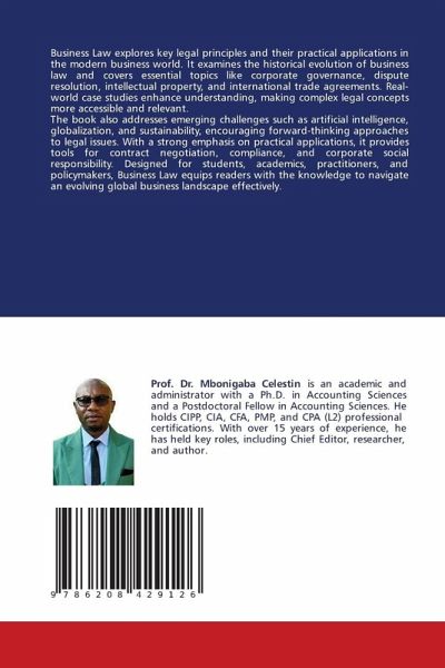 Business Law explores key legal principles and their practical applications in the modern business world. It examines the historical evolution of business law and covers essential topics like corporate governance, dispute resolution, intellectual property, and international trade agreements. Real-world case studies enhance understanding, making complex legal concepts more accessible and relevant.The book also addresses emerging challenges such as artificial intelligence, globalization, and sustainability, encouraging forward-thinking approaches to legal issues. With a strong emphasis on practical applications, it provides tools for contract negotiation, compliance, and corporate social responsibility. Designed for students, academics, practitioners, and policymakers, Business Law equips readers with the knowledge to navigate an evolving global business landscape effectively.