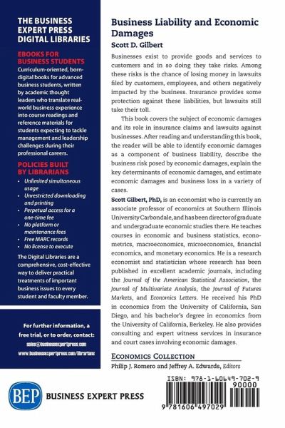 Businesses exist to provide goods and services to customers and in so doing they take risks. Among these risks is the chance of losing money in lawsuits filed by customers, employees, and others negatively impacted by the business. Insurance provides some protection against these liabilities, but lawsuits still take their toll. This book covers the subject of economic damages and its role in insurance claims and lawsuits against businesses. After reading and understanding this book, the reader will be able to identify economic damages as a component of business liability, describe the business risk posed by economic damages, explain the key determinants of economic damages, and estimate economic damages and business loss in a variety of cases.