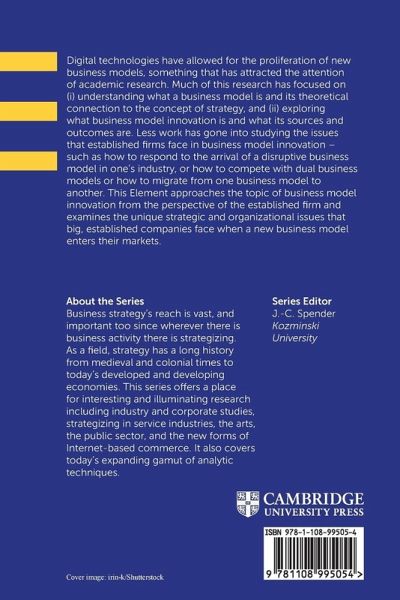 This Element approaches the topic of business model innovation from the perspective of the established firm and examines the unique strategic and organizational issues that big, established companies face when a new business model enters their markets.