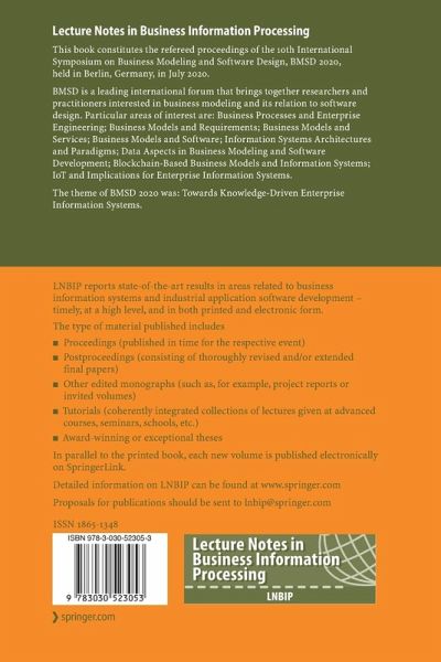 This book constitutes the refereed proceedings of the 10th International Symposium on Business Modeling and Software Design, BMSD 2020, which took place in Berlin, Germany, in July 2020. BMSD is a leading international forum that brings together researchers and practitioners interested in business modeling and its relation to software design. Particular areas of interest are: Business Processes and Enterprise Engineering; Business Models and Requirements; Business Models and Services; Business Models and Software; Information Systems Architectures and Paradigms; Data Aspects in Business…mehr