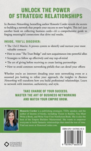 Are you tired of attending networking events that lead nowhere? Do you want to build a thriving network of contacts that actually generates business? Look no further than Business Networking by Honorée Corder. With over two decades of experience as an executive coach and empire builder, Ms. Corder has distilled her expertise into a practical guide that will revolutionize your approach to professional relationships. This book isn't about quick fixes or manipulative tactics-it's about creating genuine connections that stand the test of time. Through her innovative 12x12 Matrix System, you'll learn how to: ¿ Identify the key players who can help skyrocket your success ¿ Nurture relationships strategically, moving from stranger to trusted partner ¿ Master the art of follow-up without being pushy ¿ Position yourself as an indispensable resource in your network ¿ Turn casual contacts into loyal clients and passionate referral sources Packed with real-world examples, actionable advice, and Ms. Corder's signature humor, Business Networking is your roadmap to building a network that works for you 24/7. Whether you're a seasoned entrepreneur or just starting out, this book will equip you with the tools to create connections that count. Start building powerful connections today! Grab your copy of Business Networking today and start building relationships that will transform your career and your life.