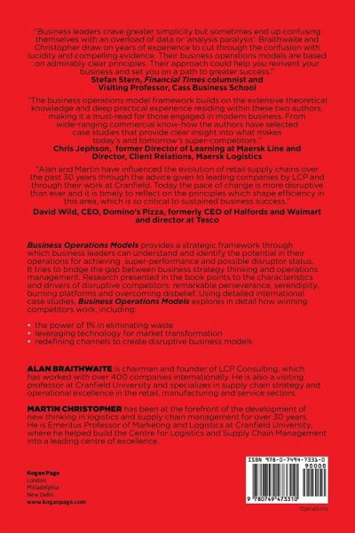 Most successful companies have operations management at their heart. It enables strategy and should be part of boardroom discussions. However, Cranfield research has shown that business strategy barely recognises the world of operations management. Recognising that operations management needs to be more strategic, Business Operations Models is a revolutionary new title that looks at the interrelationship of operations management and strategy. In Business Operations Models, Martin Christopher and Alan Braithwaite identify the characteristics of market-leading businesses that have transformed their markets and delivered super performance for their stakeholders. It points to the theory gap between strategic thinking and operations and how many high-performing businesses arrive at their new operating models as much by chance as judgement. Unpacking those observations leads to some clearly defined features of winning competitors, including eliminating waste, leveraging technology, and utilising transformative business models. Business Operations Models offers a framework for achieving super performance and understanding when and how a company may be able to leverage its capabilities to outperform. The book provides detailed international case studies that illustrate how the principles work in practice, including Apple, Dell, Amazon, John Lewis, Southwest Airlines, Aldi, Toyota and many others.