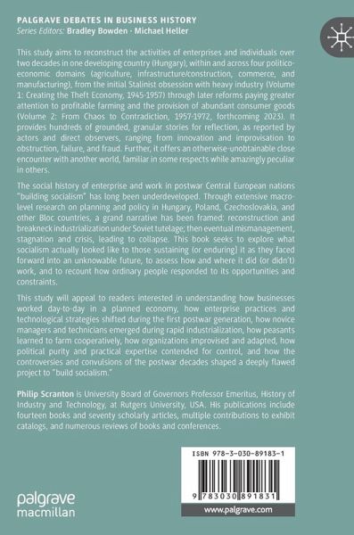 This study aims to reconstruct the activities of enterprises and individuals over two decades in one developing country (Hungary), within and across four politico-economic domains (agriculture, infrastructure/construction, commerce, and manufacturing), from the initial Stalinist obsession with heavy industry (Volume 1: Creating the Theft Economy, 1945-1957) through later reforms paying greater attention to profitable farming and the provision of abundant consumer goods (Volume 2: From Chaos to Contradiction, 1957-1972, forthcoming 2023). It provides hundreds of grounded, granular stories for reflection, as reported by actors and direct observers, ranging from innovation and improvisation to obstruction, failure, and fraud. Further, it offers an otherwise-unobtainable close encounter with another world, familiar in some respects while amazingly peculiar in others.