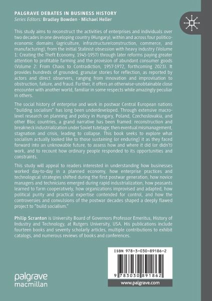 This study aims to reconstruct the activities of enterprises and individuals over two decades in one developing country (Hungary), within and across four politico-economic domains (agriculture, infrastructure/construction, commerce, and manufacturing), from the initial Stalinist obsession with heavy industry (Volume 1: Creating the Theft Economy, 1945-1957) through later reforms paying greater attention to profitable farming and the provision of abundant consumer goods (Volume 2: From Chaos to Contradiction, 1957-1972, forthcoming 2023). It provides hundreds of grounded, granular stories for reflection, as reported by actors and direct observers, ranging from innovation and improvisation to obstruction, failure, and fraud. Further, it offers an otherwise-unobtainable close encounter with another world, familiar in some respects while amazingly peculiar in others.