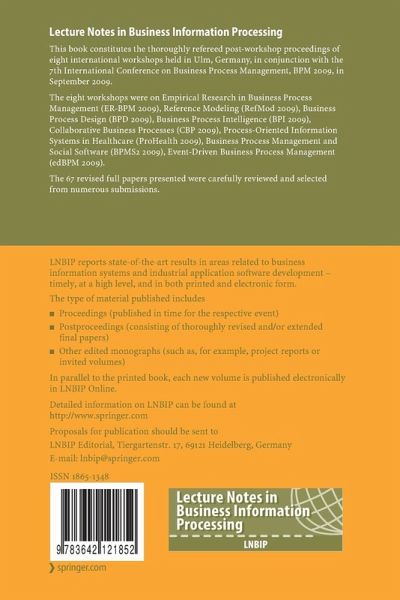 This book constitutes the thoroughly refereed post-workshop proceedings of eight international workshops held in Ulm, Germany, in conjunction with the 7th International Conference on Business Process Management, BPM 2009, in September 2009.
