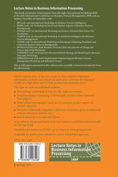 This book constitutes revised papers from the eight International Workshops held at the 16th International Conference on Business Process Management, BPM 2018, in Sydney, Australia, in September 2018: