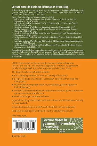 This book constitutes revised papers from the International Workshops held at the 20th International Conference on Business Process Management, BPM 2022, in Münster, Germany, during September 11-15, 2022.
