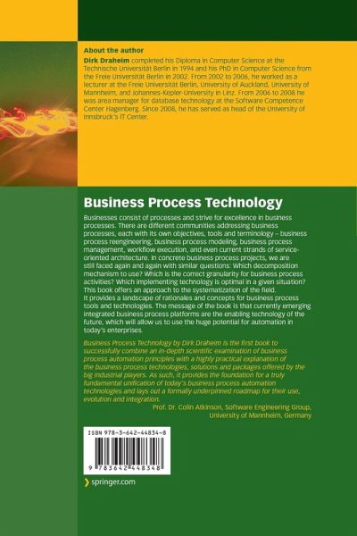 "Draheim's book serves to help unify these fields by clarifying the differences and the similarities in the concepts, relating the technologies to computer science principles, and envisioning a unified future for the use of business process technology. ... The book has been carefully written and effectively organized. It is technically precise, without getting too deep in the weeds to distract readers from the concepts or examples being presented. Many helpful diagrams are included, and 363 references are given." (M. G. Murphy, ACM Computing Reviews, August, 2011)
