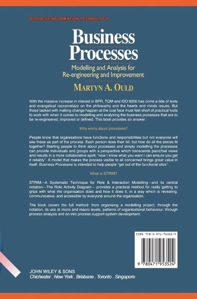 After carefully establishing the objectives of modelling, the author presents a process modelling method, STRIM, and notations which has been developed by Praxis during the last few years. Ould provides detailed descriptions of the notations and the modelling technique along with examples of its use for a variety of purposes. Covers the full method--from organising a modelling project through process analysis to process support system development. can be used by practitioners who have no prior knowledge of the area.
