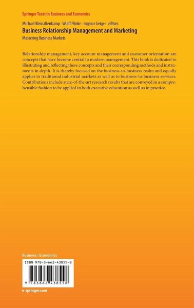 Relationship management, key account management and customer orientation are concepts that have become central to modern management. This book is dedicated to illustrating and reflecting these concepts and their corresponding methods and instruments in depth. It is thereby focused on the business-to-business realm and equally applies to traditional industrial markets as well as to business-to-business services. Contributions include state-of-the-art research results that are conveyed in a comprehensible fashion to be applied in both executive education as well as in practice.