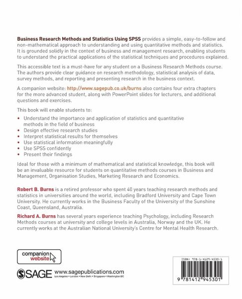 Robert B. Burns is a retired professor who spent 40 years teaching research methods and statistics in universities around the world, including Head of Department of the Postgraduate School of Education at Bradford University and Professor of Applied Psychology at Cape Town University. He still works part-time in the Business Faculty of the University of the Sunshine Coast, Queensland, Australia.′ Richard A. Burns has several years experience teaching psychology, including Research Methods courses, at university and college levels in Australia, Norway and the UK. Currently he works within the Ageing Research Unit, at the Australian National University′s Centre for Mental Health Research in Canberra, Australia.