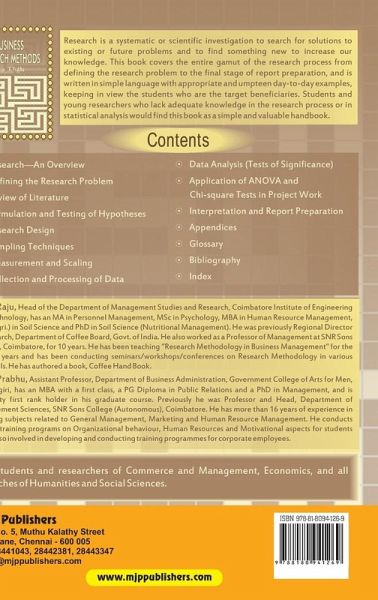 Research is a systematic or scientific investigation to search for solutions toexisting or future problems and to find something new to increase ourknowledge. This book covers the entire gamut of the research process fromdefining the research problem to the final stage of report preparation, and iswritten in simple language with appropriate and umpteen day-to-day examples, keeping in view the students who are the target beneficiaries. Students andyoung researchers who lack adequate knowledge in
