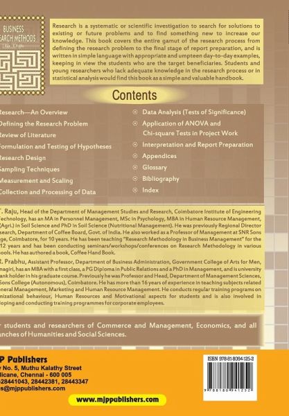 Research is a systematic or scientific investigation to search for solutions toexisting or future problems and to find something new to increase ourknowledge. This book covers the entire gamut of the research process fromdefining the research problem to the final stage of report preparation, and iswritten in simple language with appropriate and umpteen day-to-day examples, keeping in view the students who are the target beneficiaries. Students andyoung researchers who lack adequate knowledge in