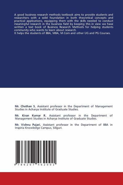 A good business research methods textbook aims to provide students and researchers with a solid foundation in both theoretical concepts and practical applications, equipping them with the skills needed to conduct meaningful research in the business field by keeping this in view we have written a text book of Business Research Methods for helping students community who wants to learn about research.It helps the students of BBA, MBA, M.Com and other UG and PG Courses.