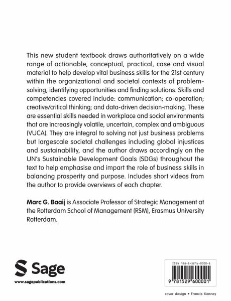 This new student textbook draws authoritatively on a wide range of actionable, conceptual, practical, case and visual material to help develop vital business skills for the 21st century within the organizational and societal contexts of problem-solving, identifying opportunities and finding solutions. Skills and competencies covered include: communication; co-operation; creative/critical thinking; and data-driven decision-making. These are essential skills needed in workplace and social environments that are increasingly volatile, uncertain, complex and ambiguous (VUCA). They are integral to solving not just business problems but largescale societal challenges including global injustices and sustainability, and the author draws accordingly on the UN s Sustainable Development Goals (SDGs) throughout the text to help emphasise and impart the role of business skills in balancing prosperity and purpose. Includes short videos from the author to provide overviews of each chapter.