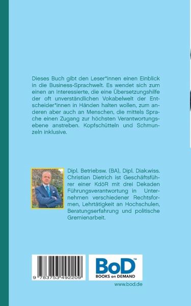 Dieses Buch ermöglicht den Leser_innen einen Einblick in die Business-Sprachwelt. Es wendet sich an Interessierte, die entweder eine Übersetzungshilfe der oft unverständlichen Vokabelwelt der Entscheider_innen in Händen halten wollen, aber auch an Menschen, die mittels Sprache einen Zugang in die höchste Verantwortungsebene anstreben. Die aufgeführten Begriffe sind nicht abschließend aufgeführt, bieten aber einen guten Überblick. Neben der Information gibt es häufig Beispiele, die zum Nachdenken, Kopfschütteln oder Schmunzeln anregen. Da es viele spezifische Sprachwelten je nach Tätigkeitsschwerpunkt gibt, zeigt das Buch nur einen Ausschnitt und soll Mut machen, genau hinzuhören und sich bestimmte Wörter im eigenen Umfeld anzueignen sowie zu hinterfragen. Dabei kommen zum Teil spannende Informationen an die Oberfläche.
