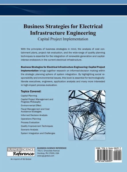 With the principles of business strategies in mind, the analysis of cost containment plans, project risk evaluation, and the wide-range of quality planning techniques is essential for the integration of renewable generation and capital-intense endeavors in the current electrical infrastructure. Business Strategies for Electrical Infrastructure Engineering: Capital Project Implementation brings together research on informed-decision making within the strategic planning sphere of system integration. By highlighting social responsibility and environmental issues, this book is essential for technologically-literate executives, engineers, application analysts and many more interested in high-impact process evaluation.