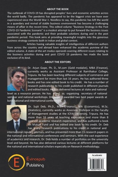 The outbreak of COVID-19 has disrupted peoples' lives and economic activities across the world badly. The pandemic has appeared to be the biggest crisis we have ever experienced since the World War II. Needless to say, this pandemic has left the world in a quandary and revival of stable business environment has become a challenging means of affair in the recent time. This edited volume "Business Strategy in the Post COVID-19 Pandemic Scenario" is a modest attempt to put forward the business issues associated with the pandemic and their probable solutions during and in the post pandemic period. This book aims at providing meaningful insights into the generous business strategy contents both in Indian and global context. Articles having valuable insights of intelligentsia of different authors from across the country and abroad have enhanced the academic purview of the edited volume. A state-of-the-art modus operandi covering different issues relating to the business activities during and post COVID 19 pandemic has made the book exclusive of its kind.