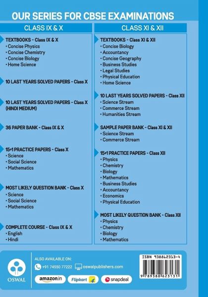 Oswal CBSE Business Studies (Including Project Work) Class XI Textbook aims at providing Social, Economic, Political and Legal aspects while establishing an Entrepreneurial Business based on latest curriculum CBSE Business Studies Textbook Highlights: Included Real-Life Case Studies of Indian Entrepreneurs and their Business Part A - Foundation of Business; Part B - Finance and Trade Chapter Objectives and illustrative examples provided for better understanding Typology of questions and their corresponding weightage given