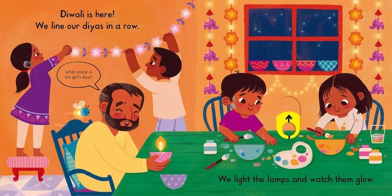 Young children can push, pull and slide the tabs to celebrate the festival of lights in Busy Diwali! Join in to light the diyas, paint rangoli and watch the sky glow at night with lanterns and fireworks. Little ones will love playing with this bright, colourful board book with gentle, rhyming text and wonderful illustrations by Darshika Varma. The perfect gift to celebrate Diwali with family. Listen along to an audio recording of this story by scanning the QR code on the back cover. Discover more celebrations in the Busy Books series with Busy Eid, Busy Easter and Busy Chinese New Year.