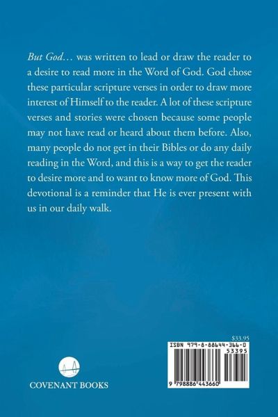 But God... was written to lead or draw the reader to a desire to read more in the Word of God. God chose these particular scripture verses in order to draw more interest of Himself to the reader. A lot of these scripture verses and stories were chosen because some people may not have read or heard about them before. Also, many people do not get in their Bibles or do any daily reading in the Word, and this is a way to get the reader to desire more and to want to know more of God. These simple devotions can be used to draw the reader to the Word of God like an appetizer to the main course.