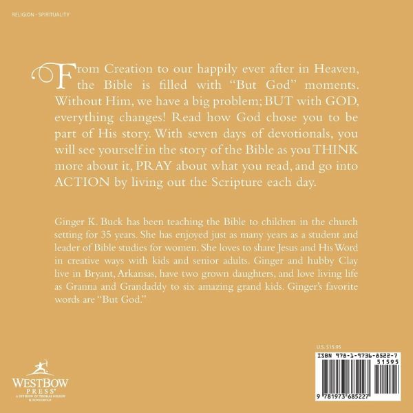 From Creation to our happily ever after in Heaven, the Bible is filled with "But God" moments. Without Him, we have a big problem; BUT with GOD, everything changes! Read how God chose you to be part of His story. With seven days of devotionals, you will see yourself in the story of the Bible as you THINK more about it, PRAY about what you read, and go into ACTION by living out the Scripture each day.