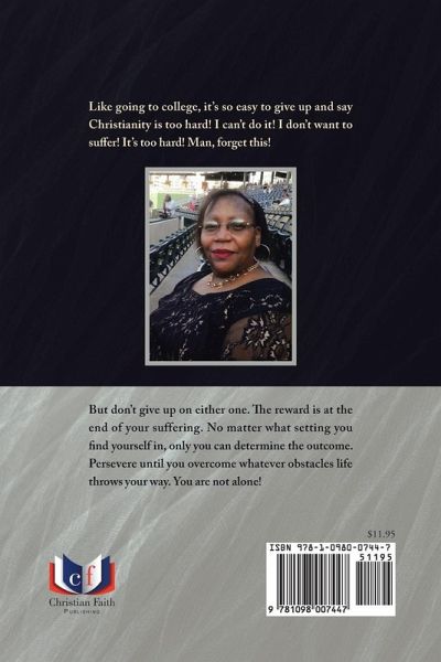 Like going to college, it's so easy to give up and say Christianity is too hard! I can't do it! I don't want to suffer! It's too hard! Man, forget this! But don't give up on either one. The reward is at the end of your suffering. No matter what setting you find yourself in, only you can determine the outcome. Persevere until you overcome whatever obstacles life throws your way. You are not alone!