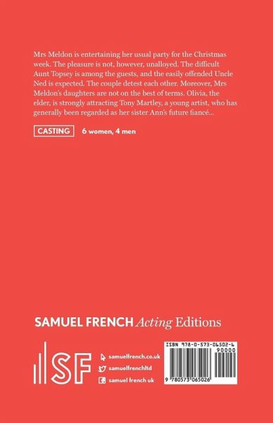 Mrs Meldon is entertaining her usual party for the Christmas week. The pleasure is not, however, unalloyed. The difficult Aunt Topsey is among the guests, and the easily offended Uncle Ned is expected. The couple detest each other. Moreover, Mrs Meldon's daughters are not on the best of terms. Olivia, the elder, is strongly attracting Tony Martley, a young artist, who has generally been regarded as her sister Ann's future fiancé...