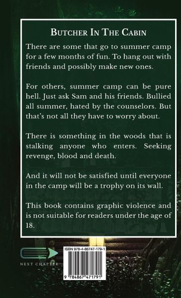 There are some that go to summer camp for a few months of fun. To hang out with friends and possibly make new ones. For others, summer camp can be pure hell. Just ask Sam and his friends. Bullied all summer, hated by the counselors. But that's not all they have to worry about. There is something in the woods that is stalking anyone who enters. Seeking revenge, blood and death. And it will not be satisfied until everyone in the camp will be a trophy on its wall. This book contains graphic violence and is not suitable for readers under the age of 18.¿