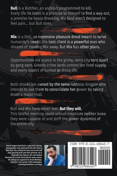 Bull is a Butcher, an android programmed to kill. Every life he takes is a promise to himself to find a way out, a promise he keeps breaking. His kind aren't designed to feel pain... but Bull does. Mix is a Doll, an expensive pleasure droid meant to serve humanity's needs. His best client is a powerful man who dreams of stealing Mix away. But Mix has other plans. Opportunities are scarce in the grimy, neon city torn apart by gang wars. Greedy crime lords control the food supply and every aspect of human or droid life. Both droids are owned by the same ruthless kingpin who intends to use them to consolidate her power by taking down a major rival. Bull and Mix have never met. But they will. This fateful meeting could unlock emotions neither knew they were capable of and shift the power dynamics of the entire city.